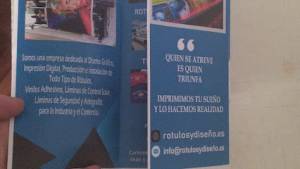 Me han diseñado e impreso una lona y muy buena calidad recomendado…